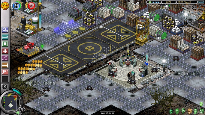 The colonists will now have to fend for themselves while the commandos take on the hyracsus and gorilloid, aided by a trail of lights that will be destroyed almost as soon as they are put down. To keep the nasties occupied, plant a small bio dome before them, which will distract them from following the trail of lights leading to the bridge; to stop them moving towards the bridge altogether, delete a few lights in the trail to create a band of darkness and put more behind the nasties to make them turn back. The commandos need light to aim but, once locked on, will continue firing in darkness, while a hyracsus with no light to attract it will stay in one spot. Annoyingly, though, the commandos will pass up the big monsters to shoot at slugs, which is why the player has to keep a constant eye on them. Things like hovermines and cluster bombs won't work, as they are destroyed from a distance. Once the destructive monsters are gone, the whole planet surface can be lit up (there are two volcanic vents to put lava plants on) and, after a bit of colonist training, androids can be used to weed the metaflaxus spreading from the top right corner (don't put the weeding posts where the burnflies are, they will destroy them). The harmless slugs can be eradicated by the commandos (tiresome, as they constantly have to be directed to where the slugs are) or by automatic lasers dropped down all over the landscape (Greg can mine argon gas to prime them for free) and sold as soon as the last slug is gone. After that, the mission is purely a matter of landscaping and watching the ant farm; if you want to green the whole surface, put down a number of bio labs (have androids man them) and don't start building a golf course until everything is covered in grass. Be sure to store 40 units of iridium for the third mission, which has only one warehouse.