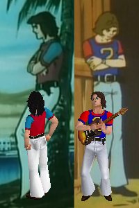 Eagle Ken and Condor Joe in first-season civvies. These characters require the M-ATN body type defaults (see the male custom body type page). |